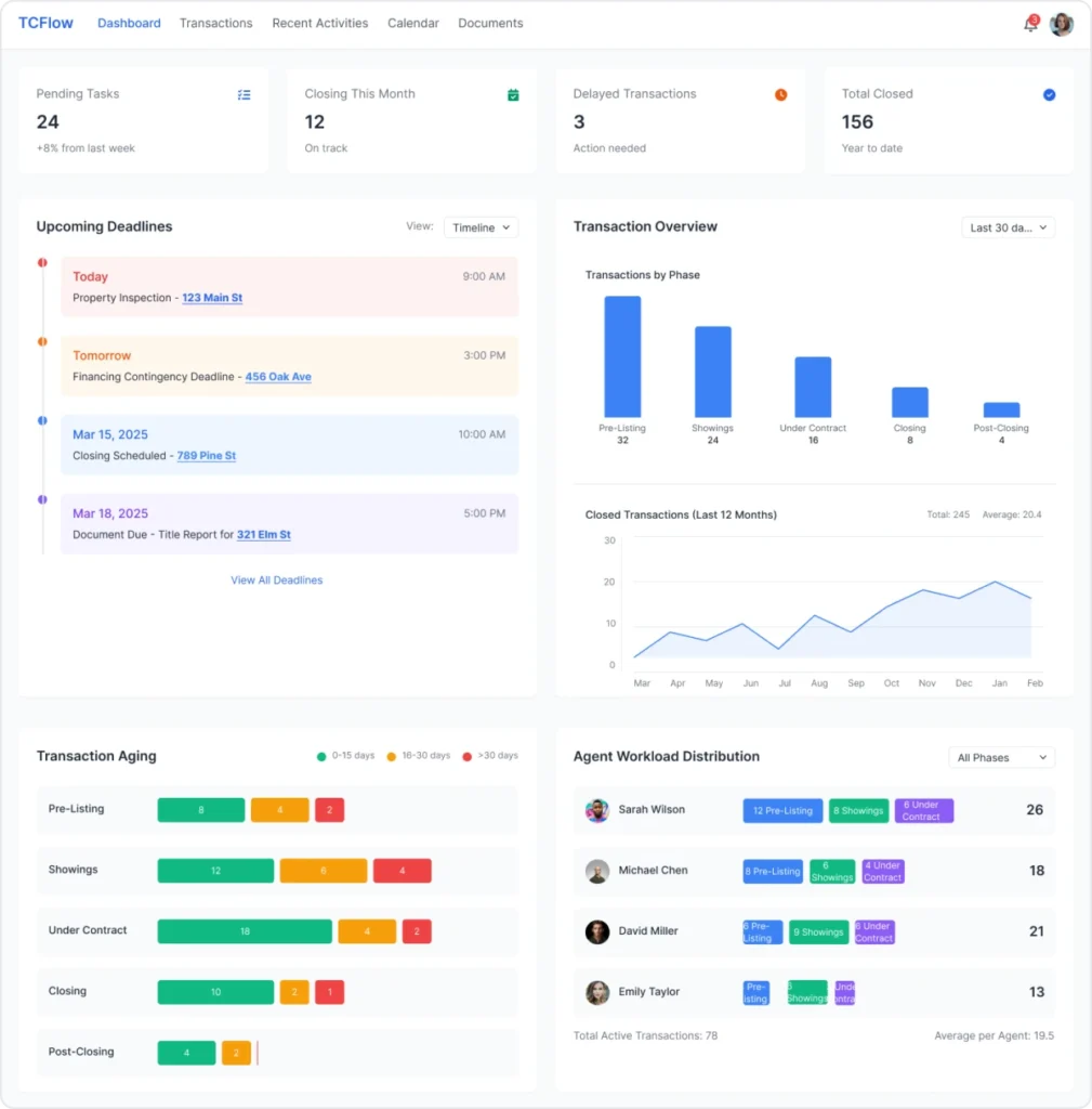 - Keep track of transaction milestones and avoid missed deadlines.
